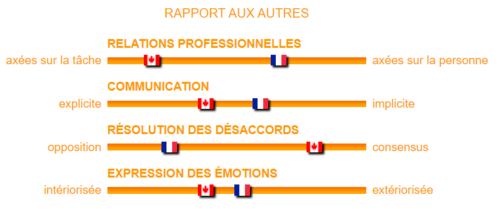 Le collaborateur en question, dont ses anciens employeurs reconnaissent les compétences techniques, semble ainsi pencher clairement du côté de la tâche. De ce point de vue, d’après la littérature interculturelle, l’explication de ce décalage n’est pas à chercher sur cette dimension. En effet, la culture française serait plus orientée « Relation » que la culture canadienne.